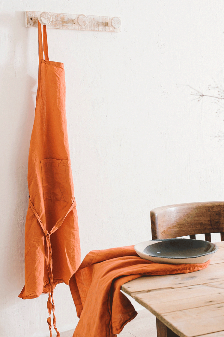 Aprons in Hemp and Organic Cotton washed finish, available in 8 colours.