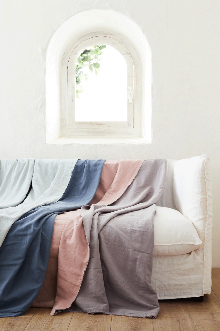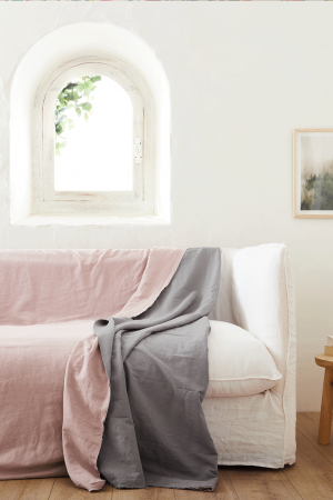 Two-tone bed throw in Hemp and Organic Cotton washed finish, available in 4 colours. Matching cushions