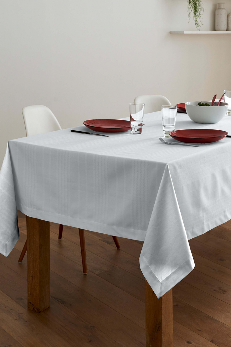 Weave cotton tablecloth with a subtle striped weave. Matching Napkins.