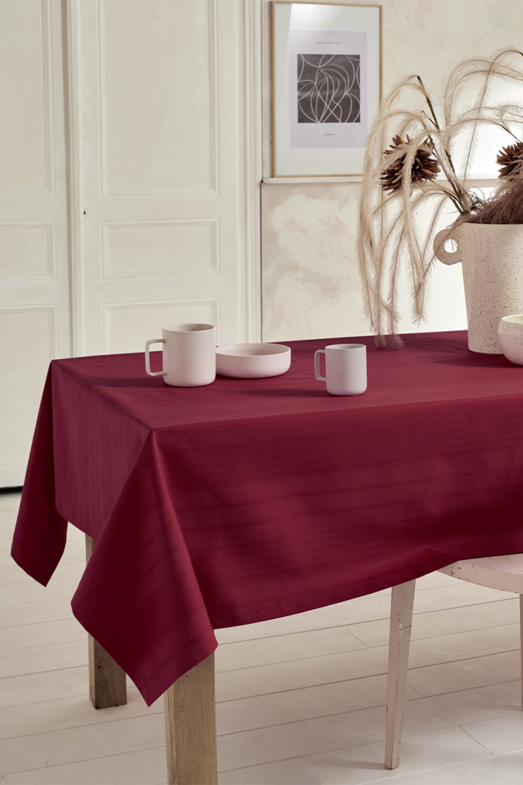 Weave cotton tablecloth with a subtle striped weave. Matching Napkins.