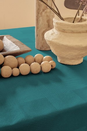 Pour la rendre déperlante, nous utilisons la technologie de l’enduction acrylique, qui consiste à enduire le tissu grâce à une fine couche de téflon et une résine fluorée bio Ainsi, votre nappe conserve la texture en relief du tissu Les liquides perlent sur la surface et un coup d’éponge suffit à les nettoyer