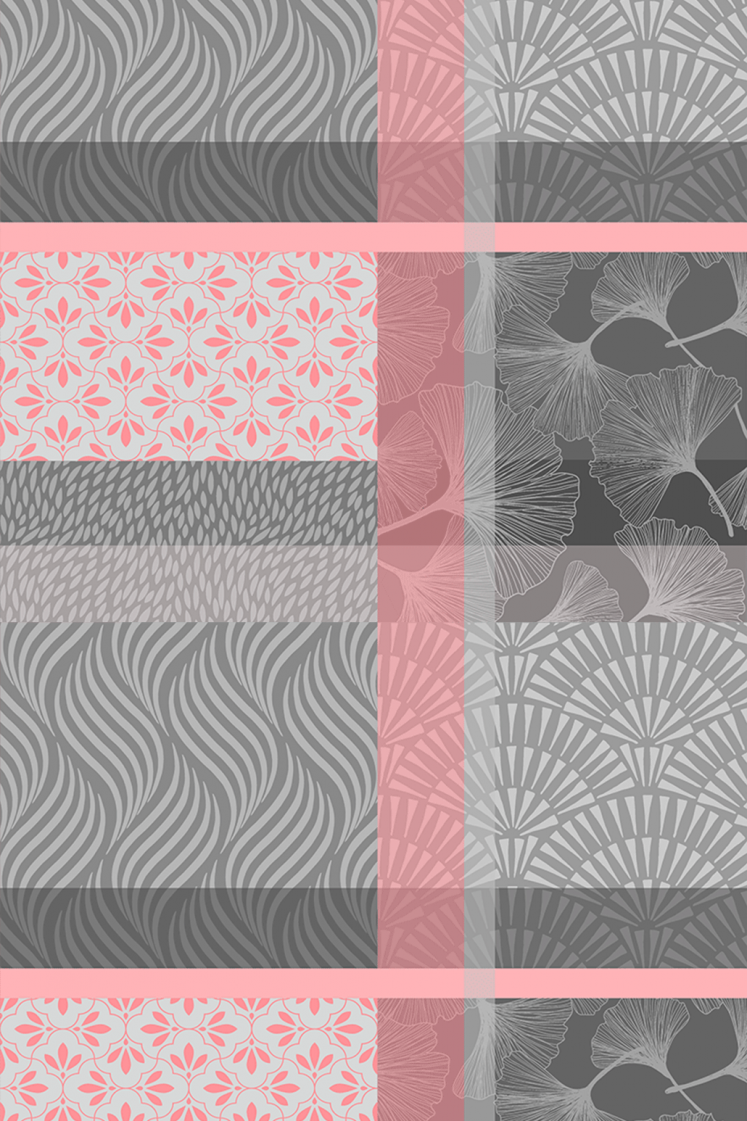La nappe Ginko allie élégance et modernité avec son mélange de gris et de rose. Elle juxtapose des carreaux aux formes géométriques avec des motifs de pétales, créant un design à la fois chic et original. Idéale pour ajouter du caractère à votre table tout en restant raffinée.