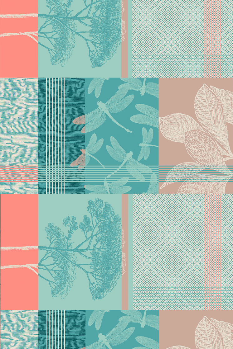 La nappe Libellule se distingue par son élégant mélange de rose et de bleu, orné de gros motifs de libellules et d'arbres formant un joli cadrillage. Ce design frais et aérien ajoute une touche de nature à votre table, idéale pour des repas en plein air ou des occasions spéciales.