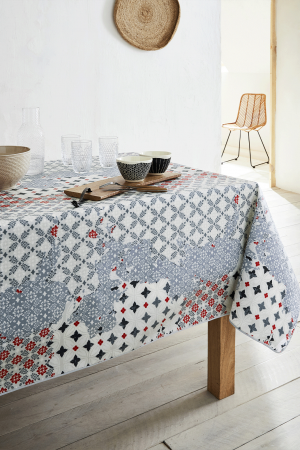 La nappe Montena allie harmonieusement motifs géométriques et floraux, créant un design élégant et intemporel. Son style subtil s'adapte à de nombreux décors, apportant une touche de caractère et de sophistication à votre table.