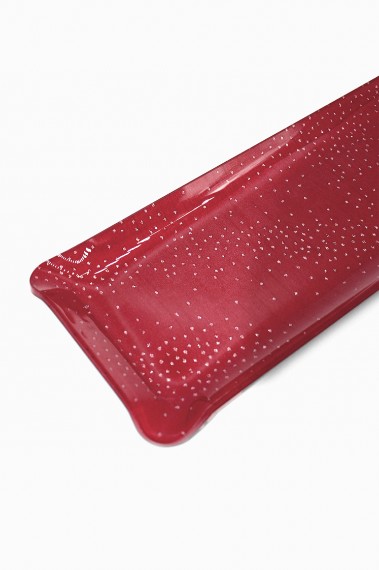 Sublimez votre table avec le plateau Anthéa, où l’incrustation de tissu pailleté crée un éclat raffiné. Disponible en blanc ou en rouge, son dessus en acrylique de 4 mm intensifie la brillance du décor, tandis que son dessous de 1 mm le protège durablement. Élégant et lumineux, il apportera une touche précieuse à vos instants de convivialité.