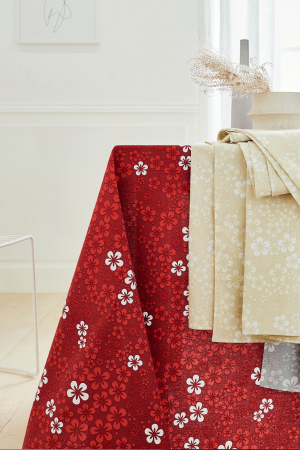 La nappe Lolipop, disponible en plusieurs coloris, est ornée d'un motif de petites fleurs minimalistes. Le même dessin floral se répète avec des variations de taille, créant un effet harmonieux et délicat. Elle apporte une touche de fraîcheur discrète à votre table.