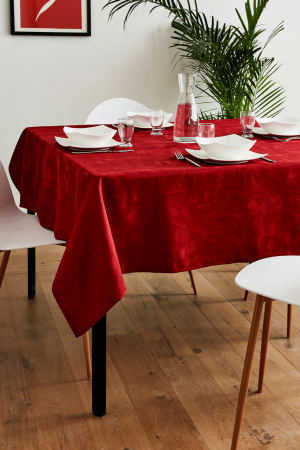 Ce damassé présente un tissage délicat qui dessine des motifs végétaux rappelant des branches ornées de feuillages. Son design uni et épuré lui confère un style sobre et luxueux, parfait pour habiller une table avec élégance. Disponible en plusieurs couleurs, la nappe Liseron offre une touche de raffinement intemporel.