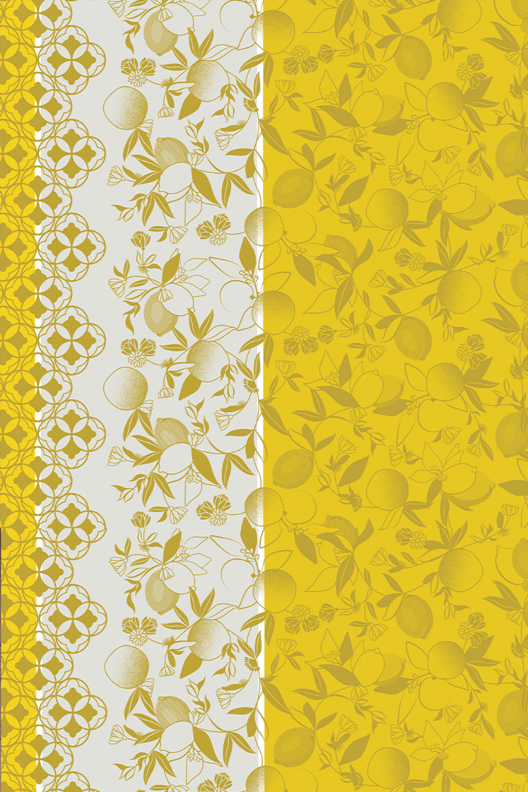 Apportez une touche de soleil et de fraîcheur à vos repas avec la nappe Zest. Son élégant jaune lumineux, rythmé par des bandes plus claires et de délicats motifs de citron, évoque instantanément la douceur de vivre méditerranéenne.