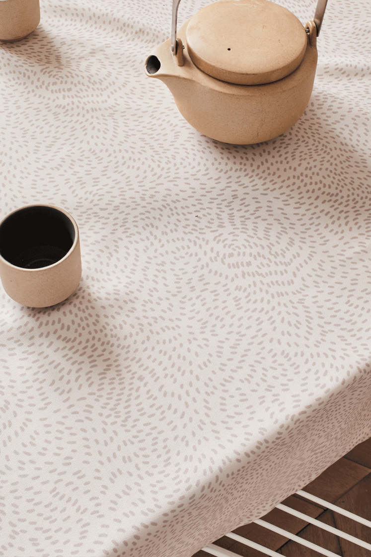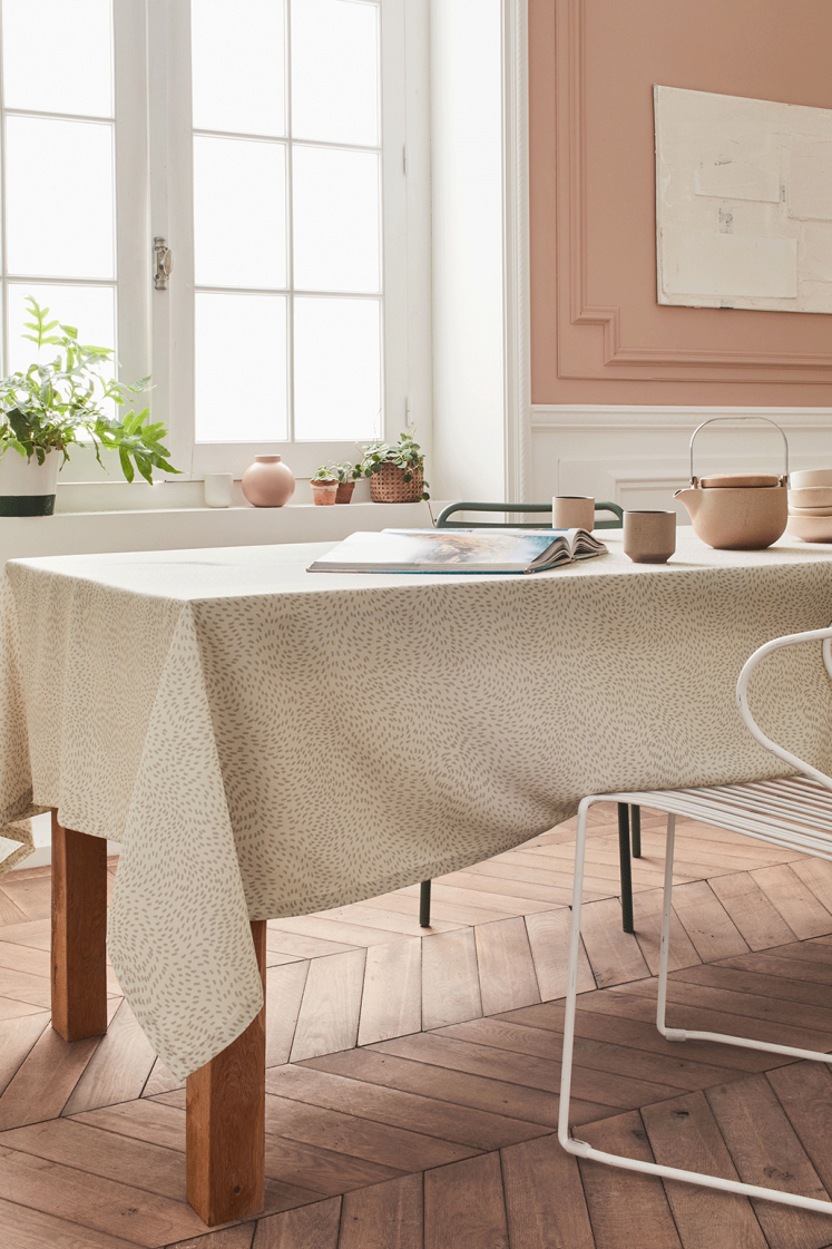 Sugar est une nappe en bachette au design simple et efficace. Son motif de petits points allongés dynamiques apporte une touche de modernité subtile, parfaite pour une décoration de table sobre mais raffinée qui s'adapte à toutes les occasions.