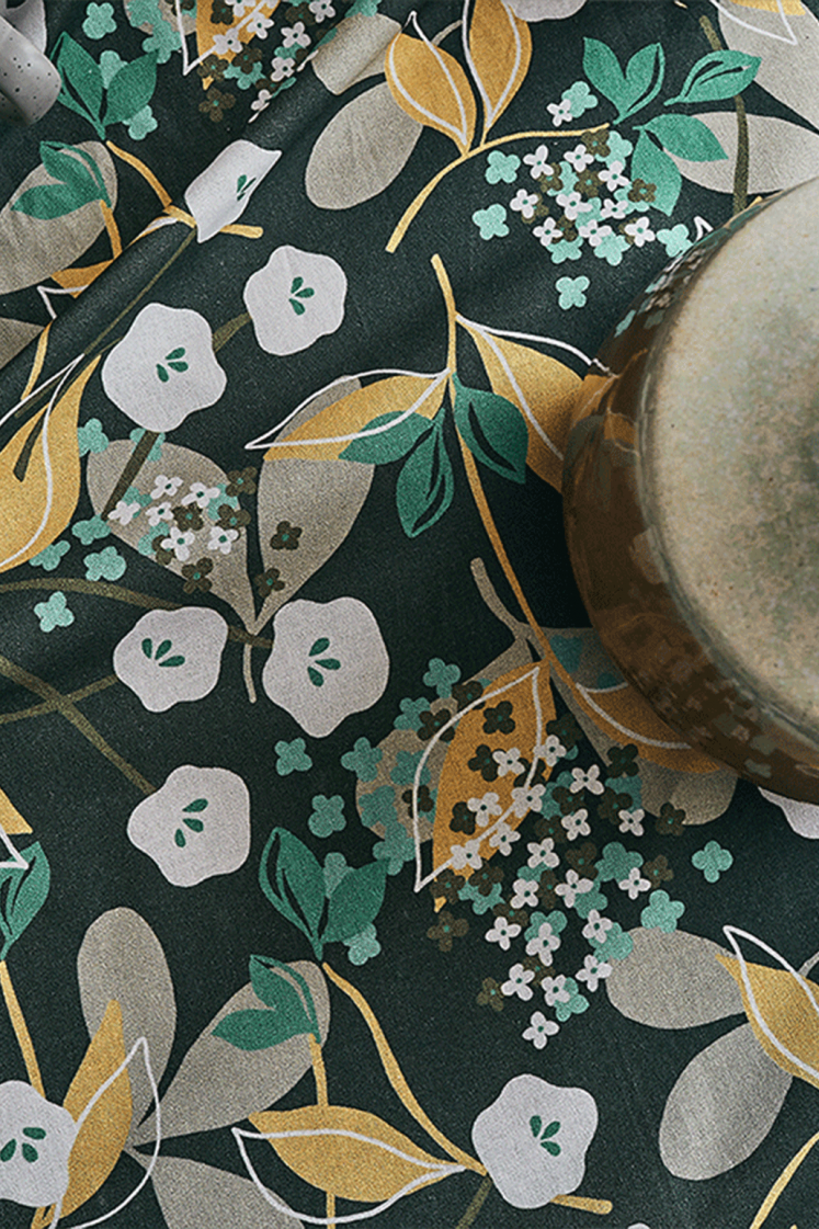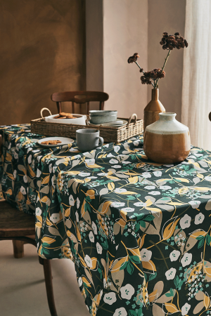 Ajoutez du caractère à votre décoration avec la nappe Carambole. Ses motifs floraux et feuillus, déclinés en nuances de blanc, beige, jaune et vert, s'harmonisent élégamment sur un fond gris, créant un contraste raffiné. Idéale pour habiller votre table tout en la protégeant des petits incidents du quotidien, cette nappe au design expressif et coloré sublimera votre pièce avec charme et personnalité.