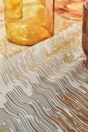 La nappe Atmosphère se caractérise par un design audacieux, mêlant de nombreux traits abstraits et des bulles. Ses couleurs chaudes créent une ambiance dynamique et vivante, apportant une touche artistique à votre table. Parfaite pour ceux qui cherchent à exprimer leur style unique avec originalité et sophistication.