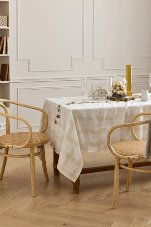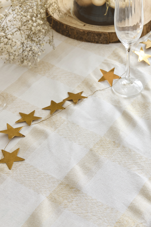 La nappe Lyséa allie la douceur d’un tissu beige à la sophistication d’un quadrillage de fils dorés pailletés. Ce motif classique et intemporel rehausse la table d’une élégance subtile, parfaite pour des réceptions chics comme pour un dîner en famille. Avec son éclat discret et son style indémodable, Lyséa apporte une touche festive tout en restant sobre, offrant un équilibre idéal pour toutes les occasions où raffinement et simplicité se rejoignent.