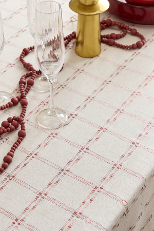 La nappe Mésy incarne l'élégance discrète avec son esprit lin brodé de fils pailletés rouges formant de délicats carreaux. Ce jeu de textures crée un effet raffiné, où la sobriété du lin se marie parfaitement avec la touche subtile des broderies scintillantes. Mésy est idéale pour habiller une table de fête avec distinction, tout en restant assez sobre pour s’adapter aux repas quotidiens. Sa finesse et son allure intemporelle font d’elle un choix incontournable pour ceux qui apprécient un style à la fois chic et naturel.