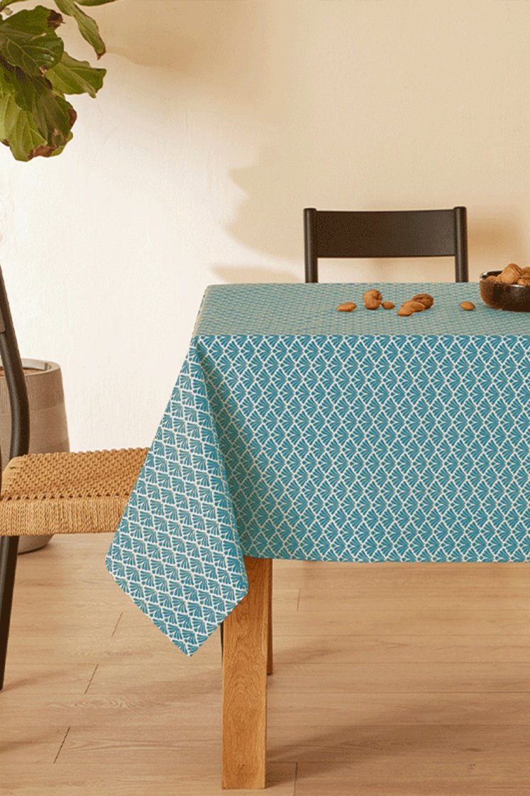 La nappe Gatsby, avec son motif inspiré de l'Art déco, présente des éventails stylisés disposés en rangées géométriques symétriques, créant un design raffiné et élégant. Ce motif apporte une touche rétro tout en restant moderne, parfait pour sublimer vos tables avec une ambiance chic. Disponible en bleu, gris et jaune, la nappe Gatsby est idéale pour ceux qui cherchent à ajouter du caractère à leur décoration de table.