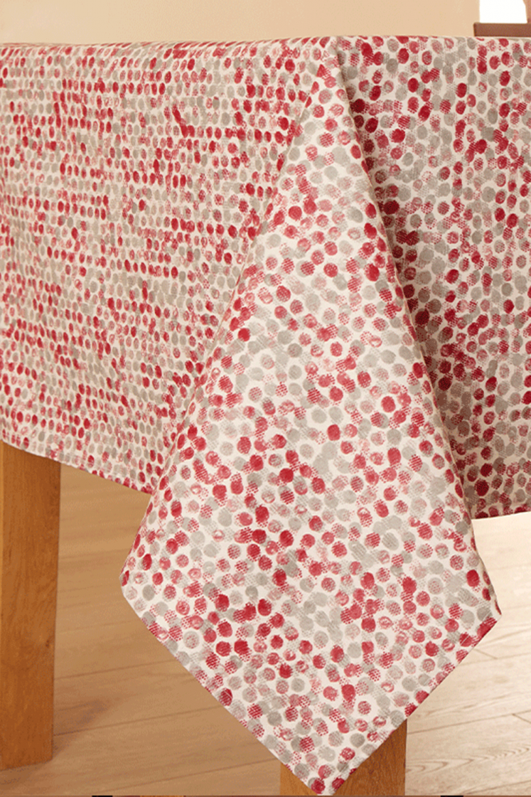 La nappe Perle arbore un motif fantaisie de superposition de points rouges, jaunes ou bleus sur un fond de points gris. Ce design apporte une touche de fraîcheur tout en conservant un aspect classique, parfait pour moderniser subtilement votre table. Élégante et discrète, cette nappe s'adapte à différents styles d'intérieurs tout en restant facile à entretenir grâce à son traitement antitache.