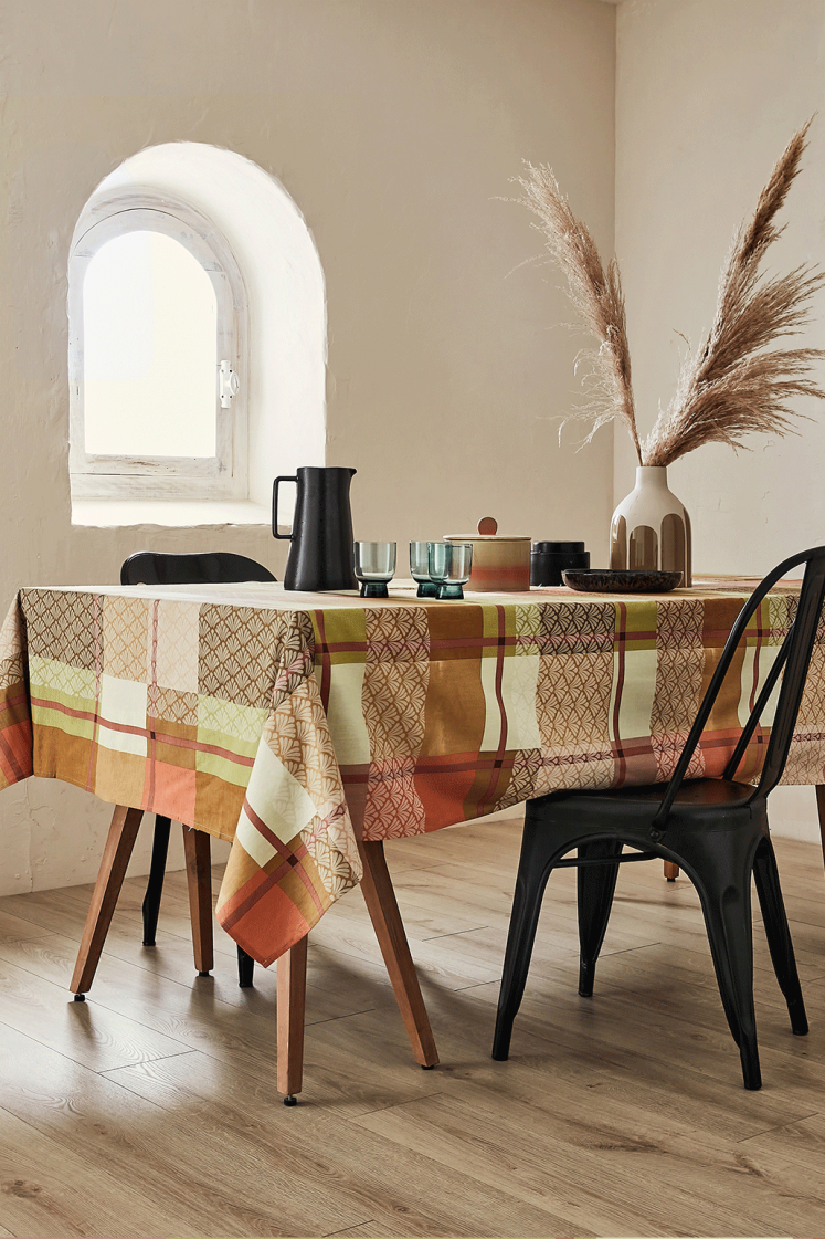 La nappe Palm apporte une touche dynamique avec son motif en tons vibrants de bleu et de vert, formant un style carreau unique. Ses motifs graphiques évoquent la modernité et la nature, créant une explosion de couleurs pleine de peps pour animer votre table.